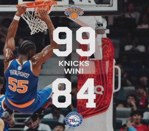 最终,尼克斯以99比84战胜了76人,不知道阿布扎比现场花高价买了球票的球迷会不会高喊退票。